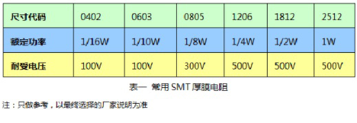 如下所示表一是比較常見SMT厚膜電阻器的參數,終選型時需與選購器件的廠家核實(此表來源于網上):