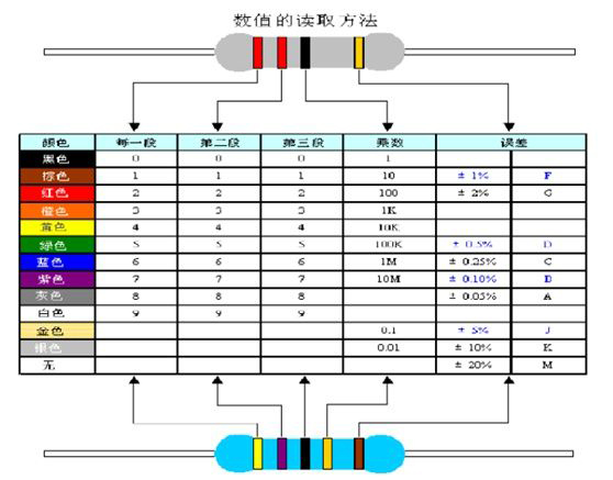 1、允許誤差:標稱電阻值(指電阻器上所標示的電阻值)與實際電阻值的差值跟標稱電阻值之比的百分數稱電阻值偏差,它表達電阻器的精度。允許誤差與精度等級對應關系如下所示:±0.5%-0.05、±1%-0.1(或00)、±2%-0.2(或0)、±5%、±10%、±20%?。?