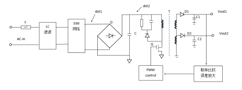 如圖,為1個完整的開關(guān)電源原理圖。