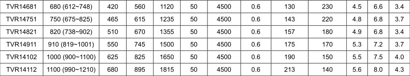 壓敏電阻片徑: Φ14mm 標稱壓敏電壓(@1mADC): 910V(819~1001)