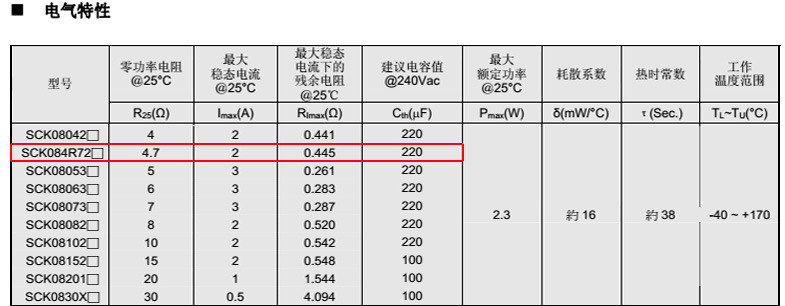 熱敏電阻型號: