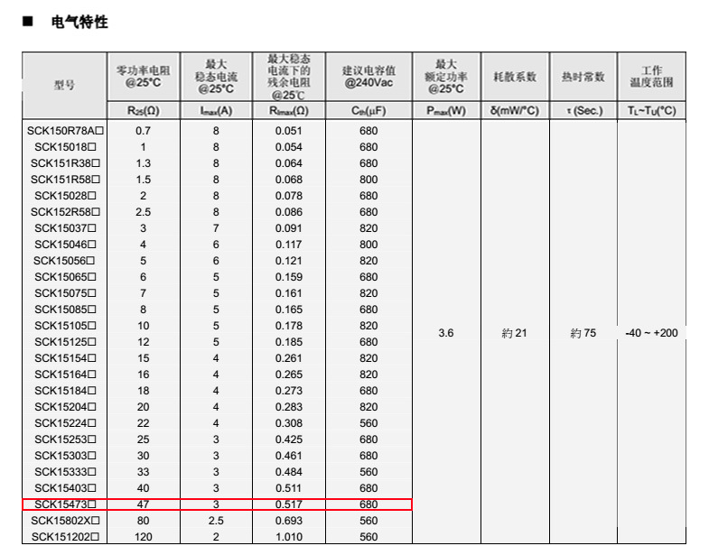 熱敏電阻型號(hào):