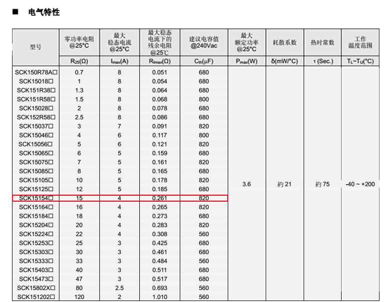 熱敏電阻型號: