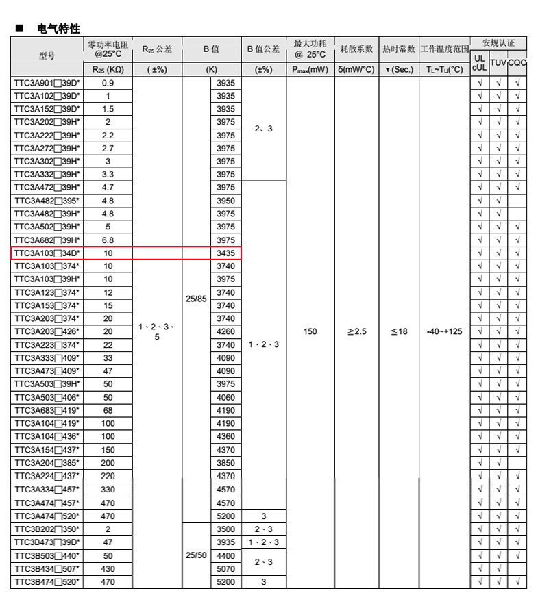 熱敏電阻型號: