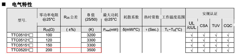 熱敏電阻型號: