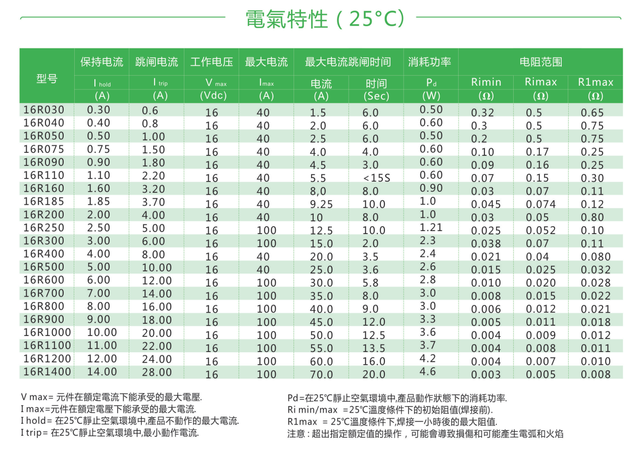 16R自恢復插件PPTC熱敏電阻