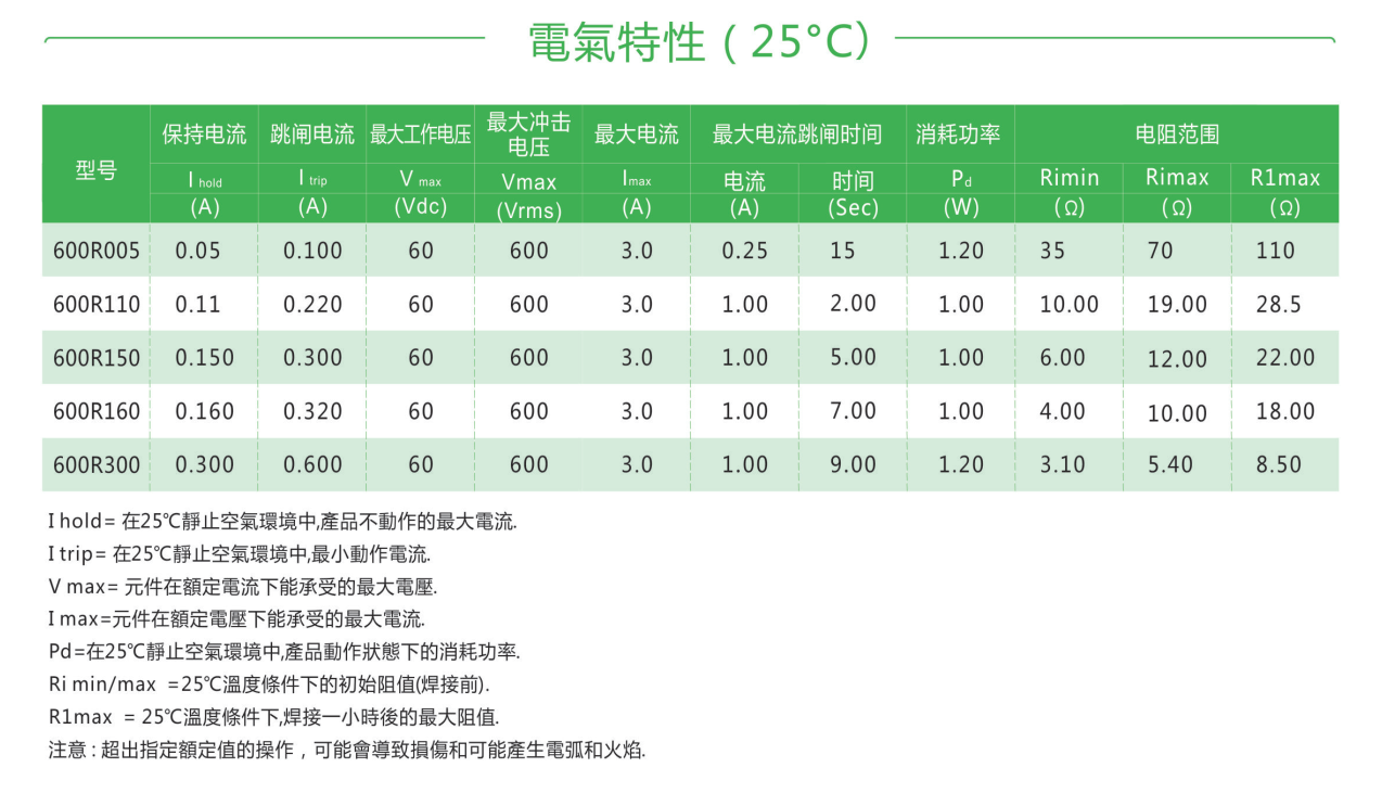 600R自恢復插件PPTC熱敏電阻