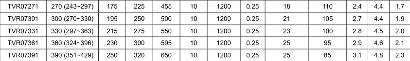 壓敏電阻片徑: Φ7mm 標稱壓敏電壓(@1mADC): 360V(324~396)